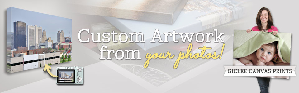 Make a masterpiece out of your treasured photos. Print your favorite pictures, in different sizes, on high-quality textured canvas, fine art papers, or Plaque Mounts. Alternately, you can order a 100% Handmade Oil Painting. We gallery wrap your Canvas Prints or Handmade Oil Paintings on wooden stretcher bars (3/4", 1.5" or 2.5"), or framed. When we deliver your artwork, it is finished and ready-to-hang! View Gallery wrap samples...
