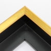 This small, L-shaped floating canvas frame in matte black features a brushed gold face.