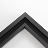 This simple, tapered edge canvas floater frame features a narrow face with a drop edge that widens internally toward the base.  This style, in a classic matte black, lends a unique hovering effect to your framed canvas.