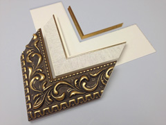 An image of corner samples: picture frame, linen liner, window mat, fillet