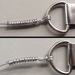 • Don't cut the wire away once it's been tied around the hanger. Wrap the excess (short end) around the longer end until it is used up. This will prevent the wire from slipping over time.