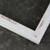 This flat slim frame is made from wood yet features a rough natural graveled texture. The simple light grey tones amplify the delicate beading that frames the inner edge of the profile.