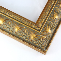This classic wide gold frame features ornate leaf detailing on a 2-1/2 " curved profile. This frame adds an elegant and antique aesthetic to your artwork.
